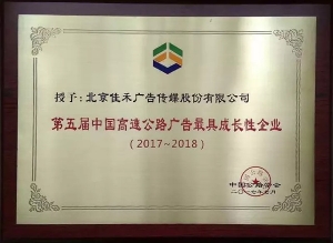 喜讯 | 九游(中国)传媒荣膺“第五届高速公路广告最具成长性企业”!2017.07.07